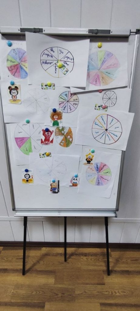 Із студентами було проведено арт-терапевтичне заняття на тему «Зірка почуттів», де студенти мали можливість краще усвідомити та виразити власні емоції у безпечній атмосфері. Учасники активно долучилися до обговорення, ділилися своїм досвідом переживання почуттів. Основною вправою було створення індивідуальної «зірки почуттів», де кожен промінь символізував певну емоцію. Така діяльність сприяла розвитку емоційної рефлексії.