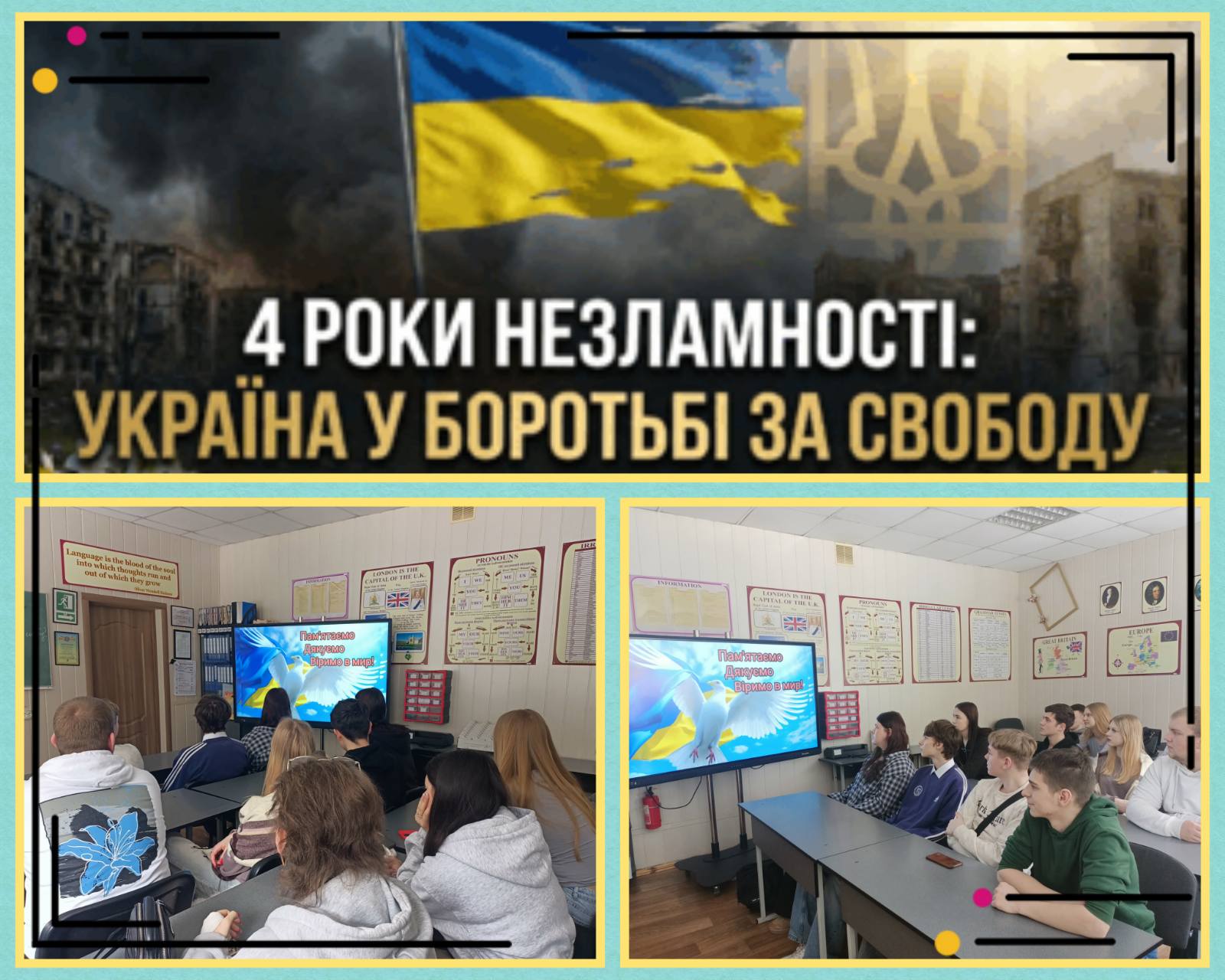 Минуло чотири роки від початку повномасштабного вторгнення, і сьогодні коледж знову об’єднався, щоб вшанувати мужність українського народу та засвідчити нашу віру в Перемогу.