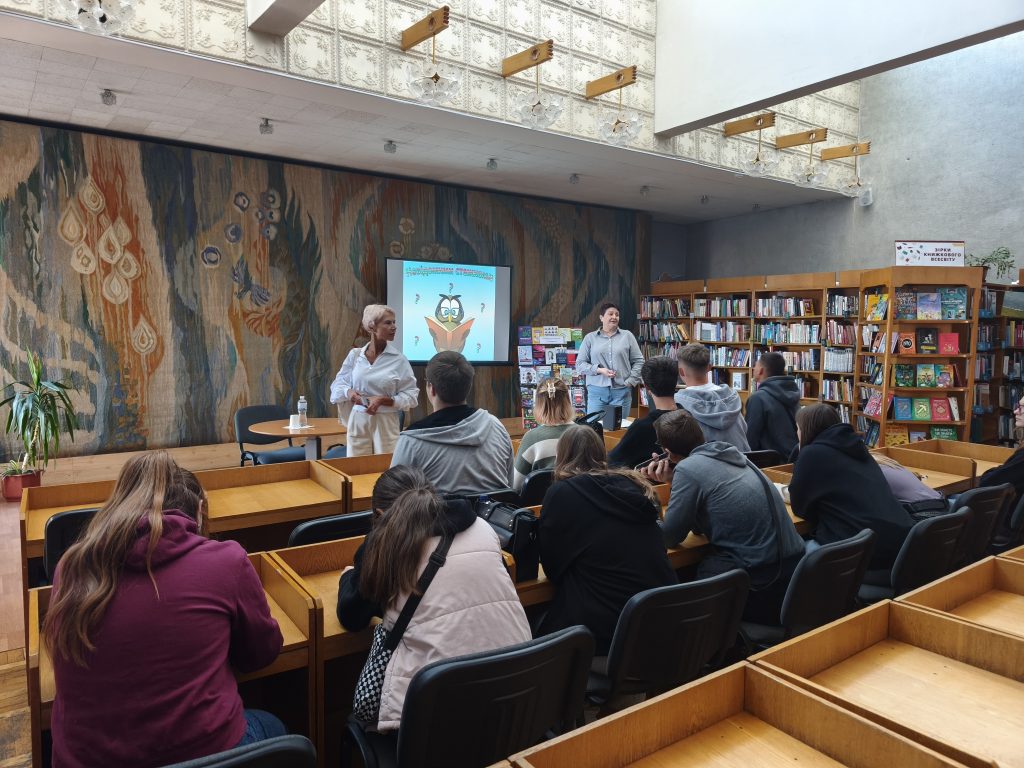 Зі студентами Київського професійного коледжу сфери послуг були проведені інформаційні бібліо-години, організована виставка «Бібліотека – твоя синергія перемоги». Напередодні цього дня в Національній бібліотеці України для дітей був проведений літературно-пізнавальний квест «Невідомими стежками», на який завітали студенти коледжу разом із заступником директора з виховної роботи та завідувачкою бібліотеки нашого закладу.