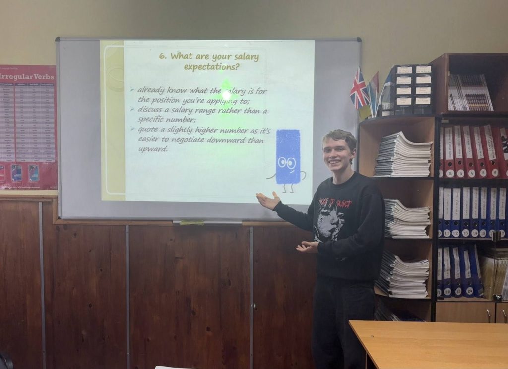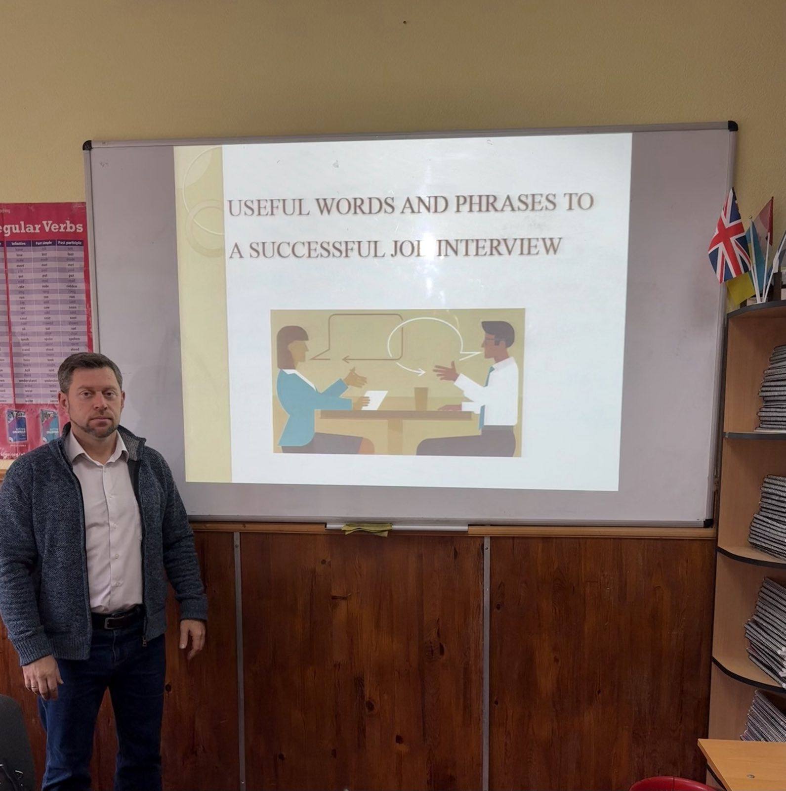 Студенти ознайомилися із ключовими словами та фразами для успішного інтервʼю англійською мовою. Співбесіда – це можливість не тільки розповісти про свої досягнення та досвід, але й продемонструвати свої комунікативні навички, впевненість і здатність швидко орієнтуватися у нових ситуаціях. Отриманні знання допоможуть майбутнім випускникам правильно презентувати себе, щоб підкреслити свої сильні сторони і вигідно вирізнятися серед інших кандидатів.