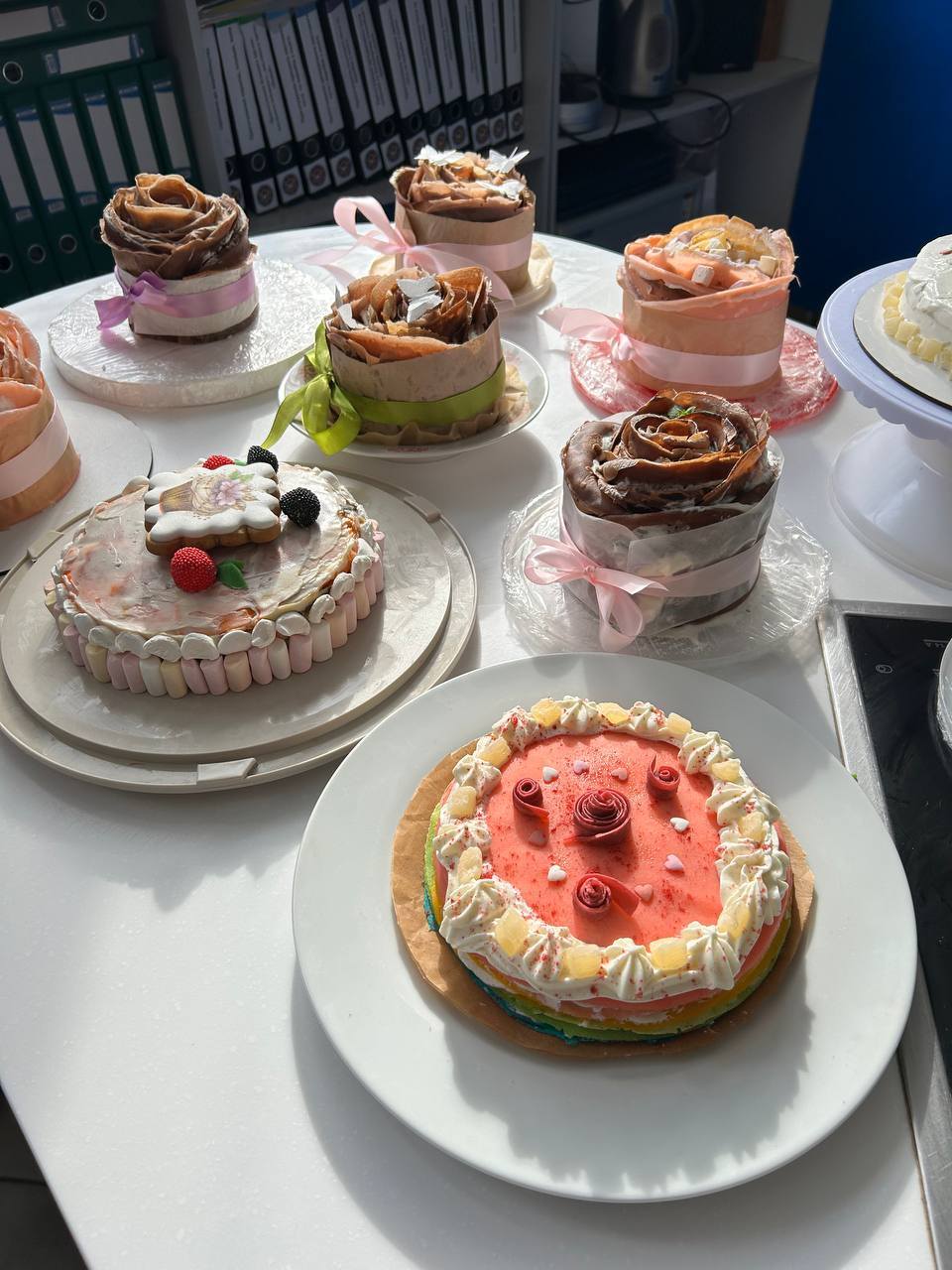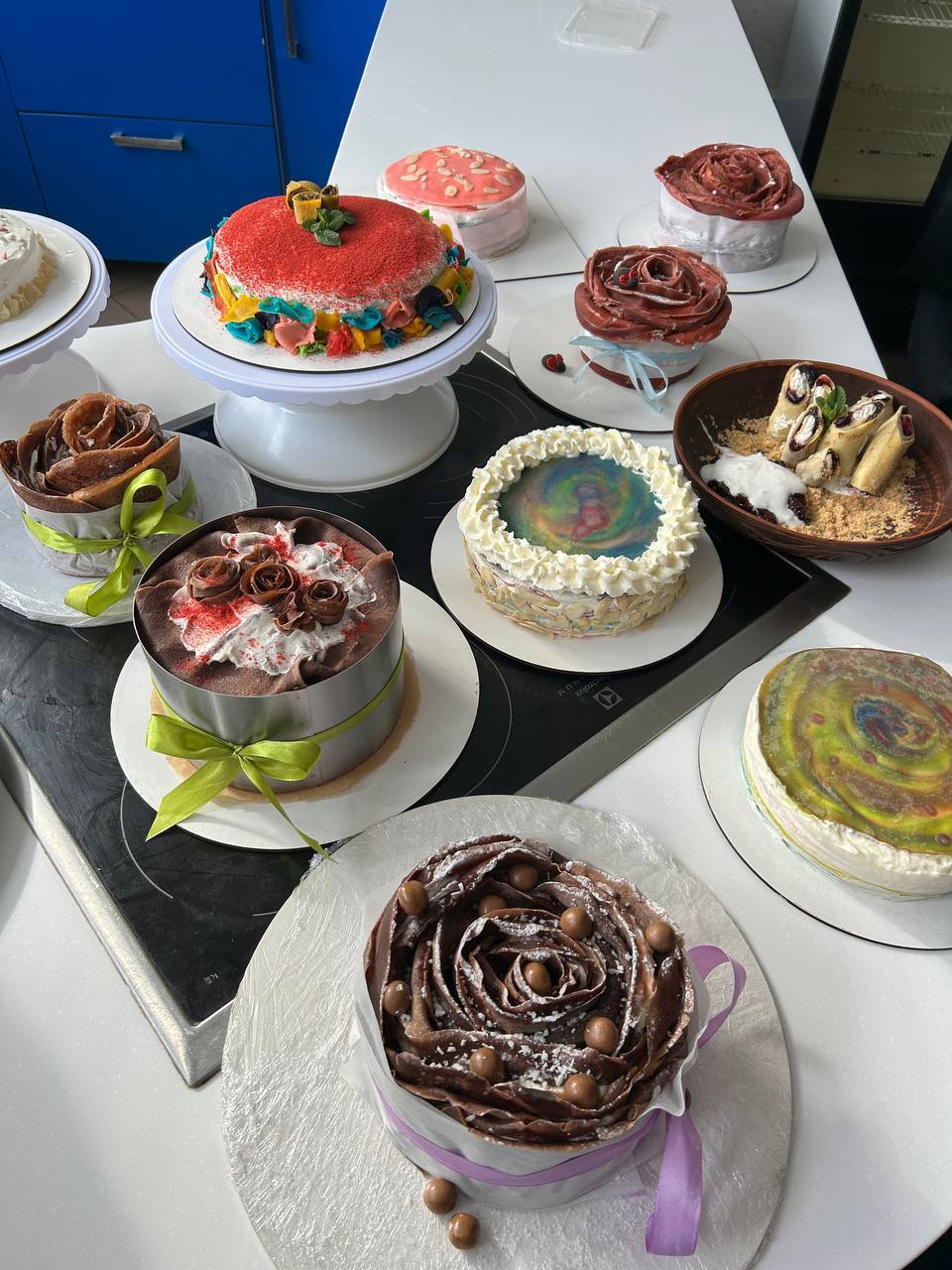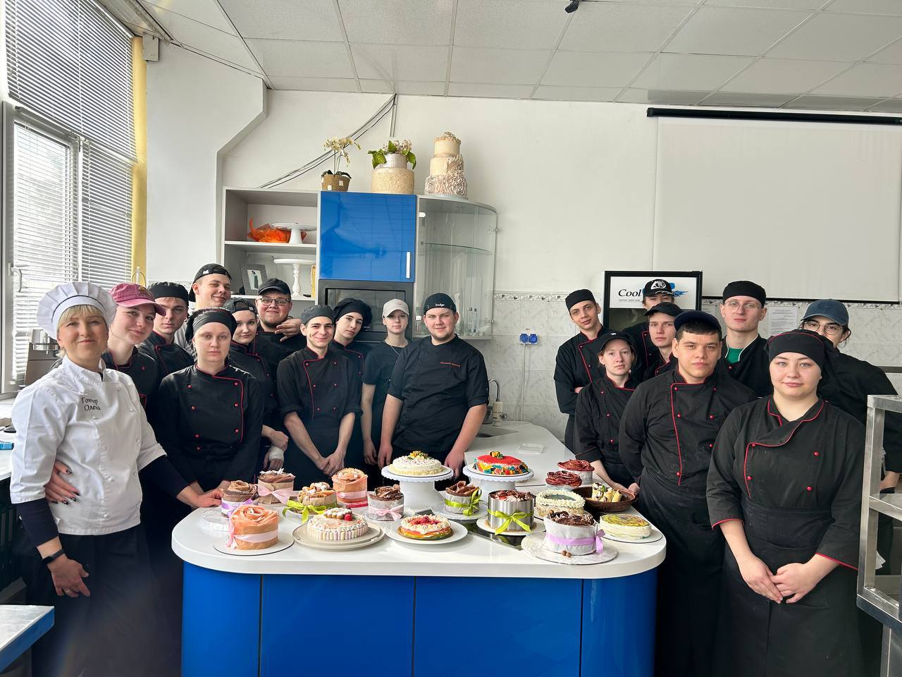 Сьогодні майбутні кондитери відпрацювали приготування млинцевого тіста та виробів з нього. Зі звичайних інгредієнтів народжувалася справжня краса — млинці «Вишиванка» та ніжний млинцевий торт.