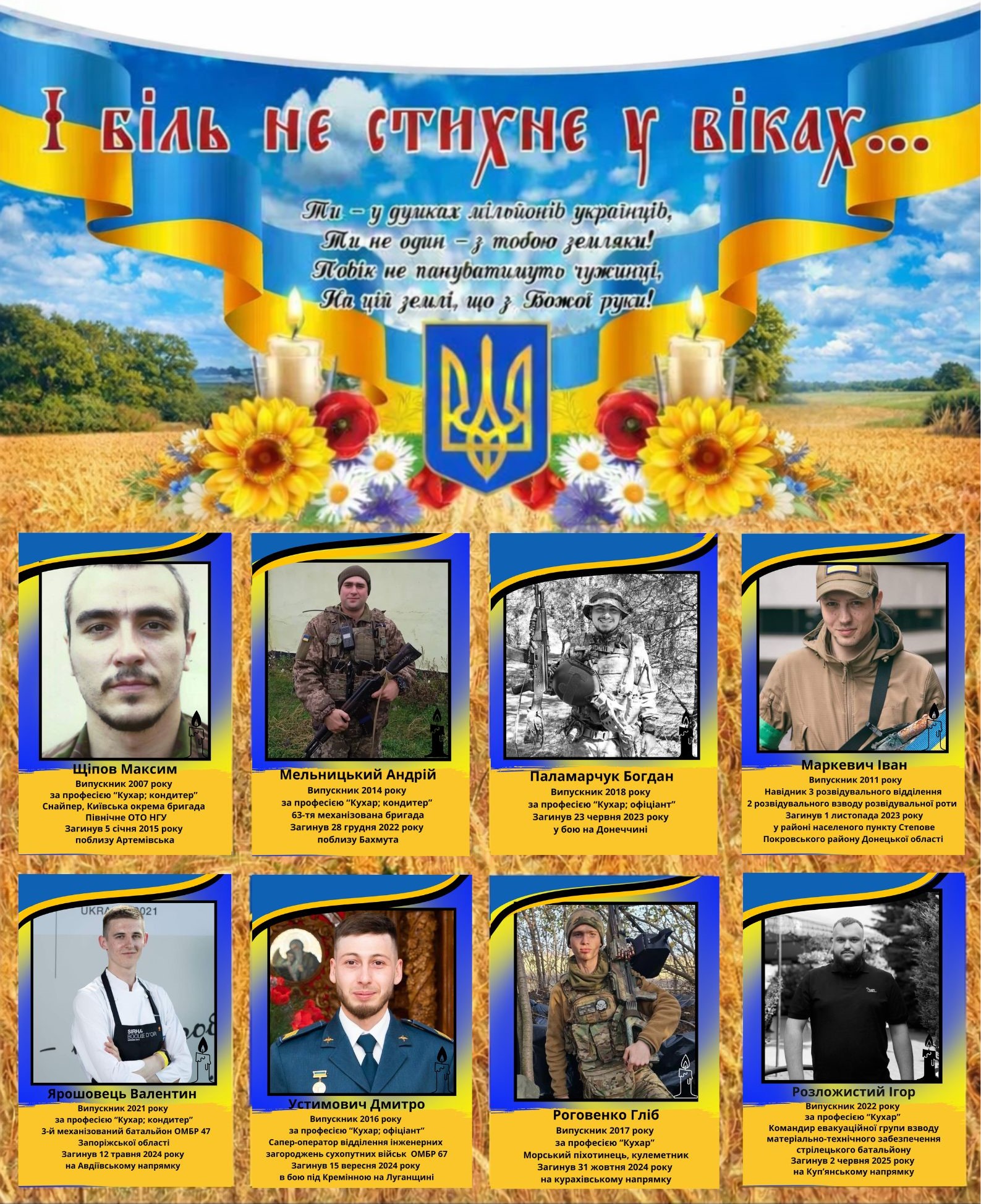 У розділі зібрано відомості про випускників нашого закладу, які загинули під час російсько-української війни та про яких нам наразі відомо. На жаль, ми можемо не володіти повною інформацією. Якщо вам відомі відомості про інших випускників, просимо повідомити адміністрацію закладу задля збереження пам’яті про кожного Героя.