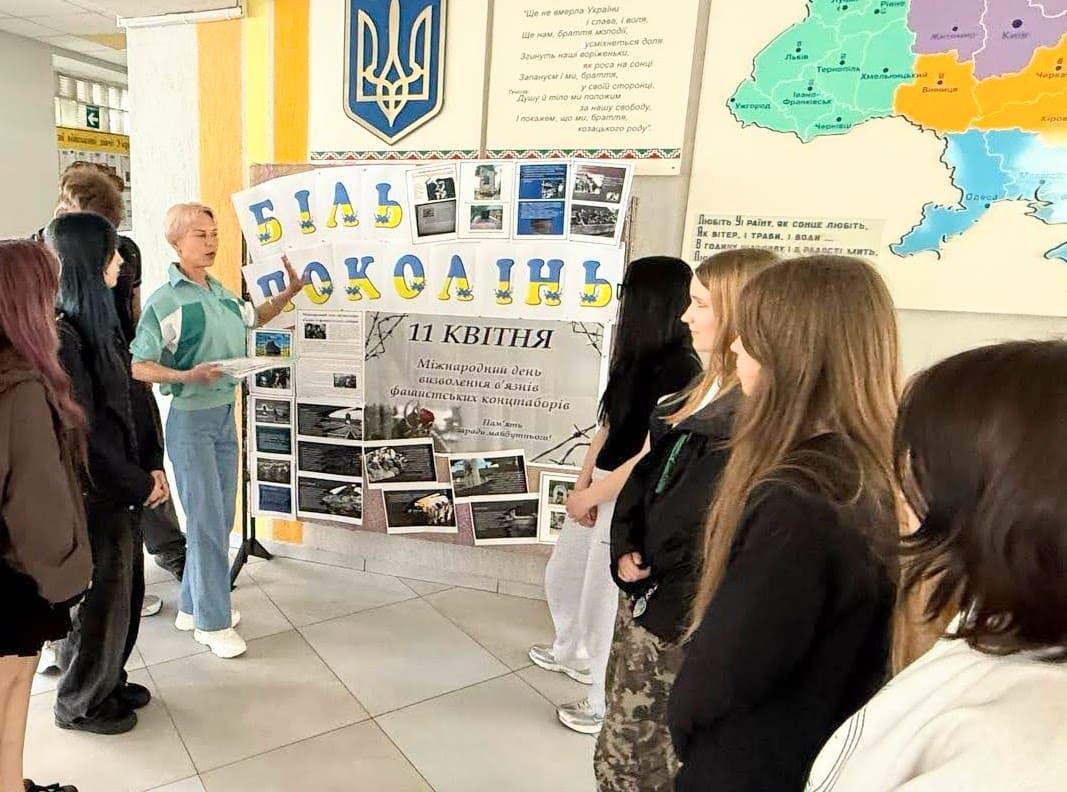 Продовженням теми стали виховні години «Уроки мужності: вижити всупереч», де особлива увага приділялася силі людського духу та важливості збереження історичної правди. Паралельно у холі закладу розгорнуто інформативно-ілюстровану виставку-реквієм «Перервані долі: хроніка табірного пекла». Експозиція містить архівні фотоматеріали, спогади очевидців, що дозволяють глибше осягнути масштаби цієї світової трагедії.