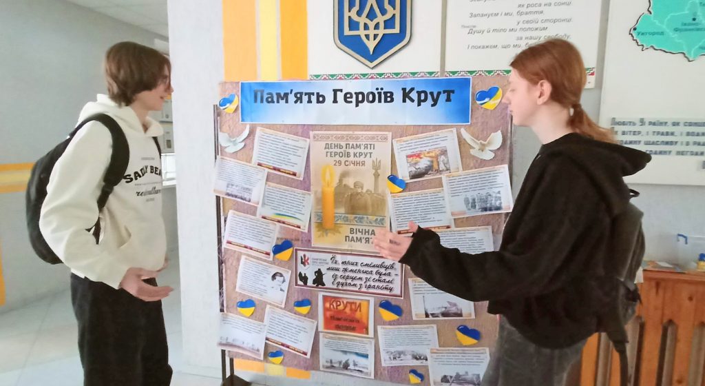 Доповненням до живого спілкування стала інформативна виставка «Крути: Символ української незламності», розгорнута в холі закладу.