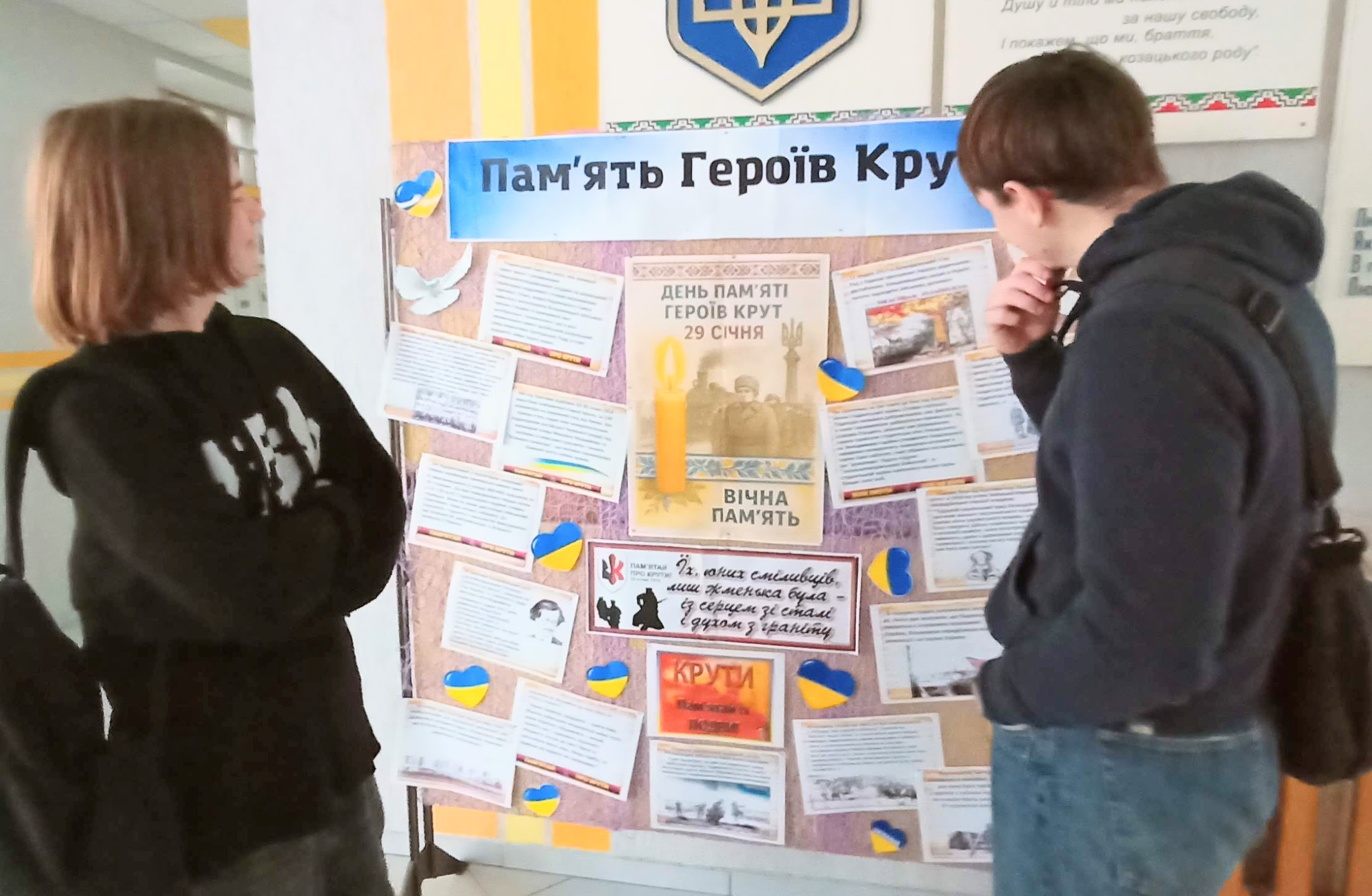 Доповненням до живого спілкування стала інформативна виставка «Крути: Символ української незламності», розгорнута в холі закладу.