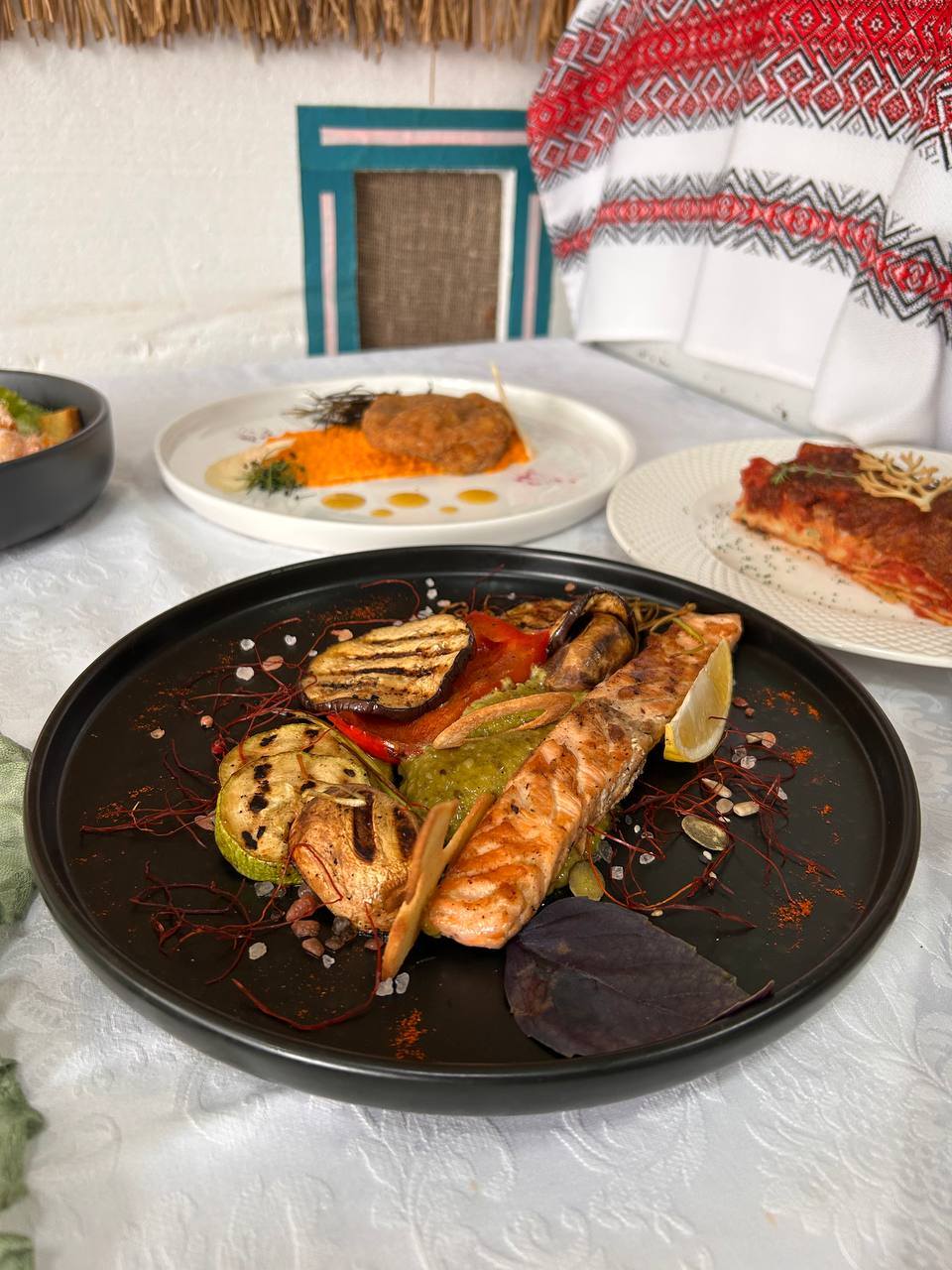 Круасан «Королівський», форель з апельсиновим соусом і овочами