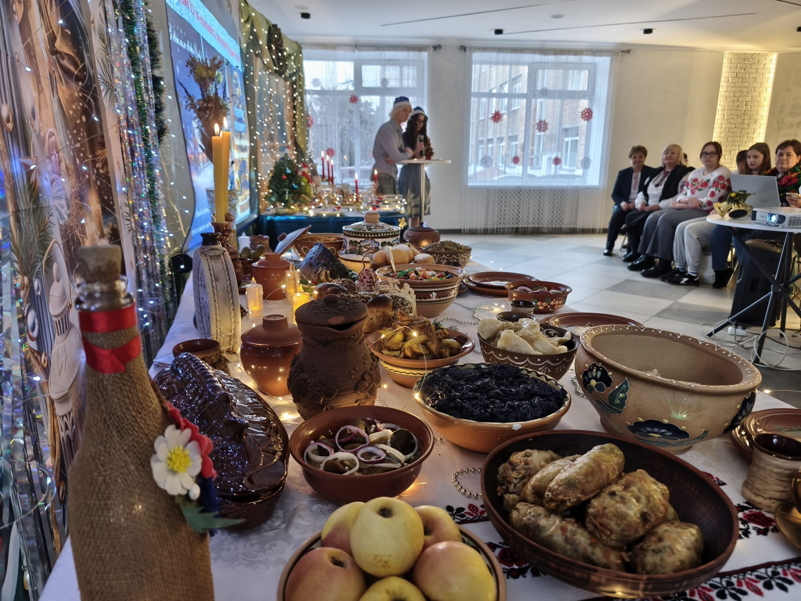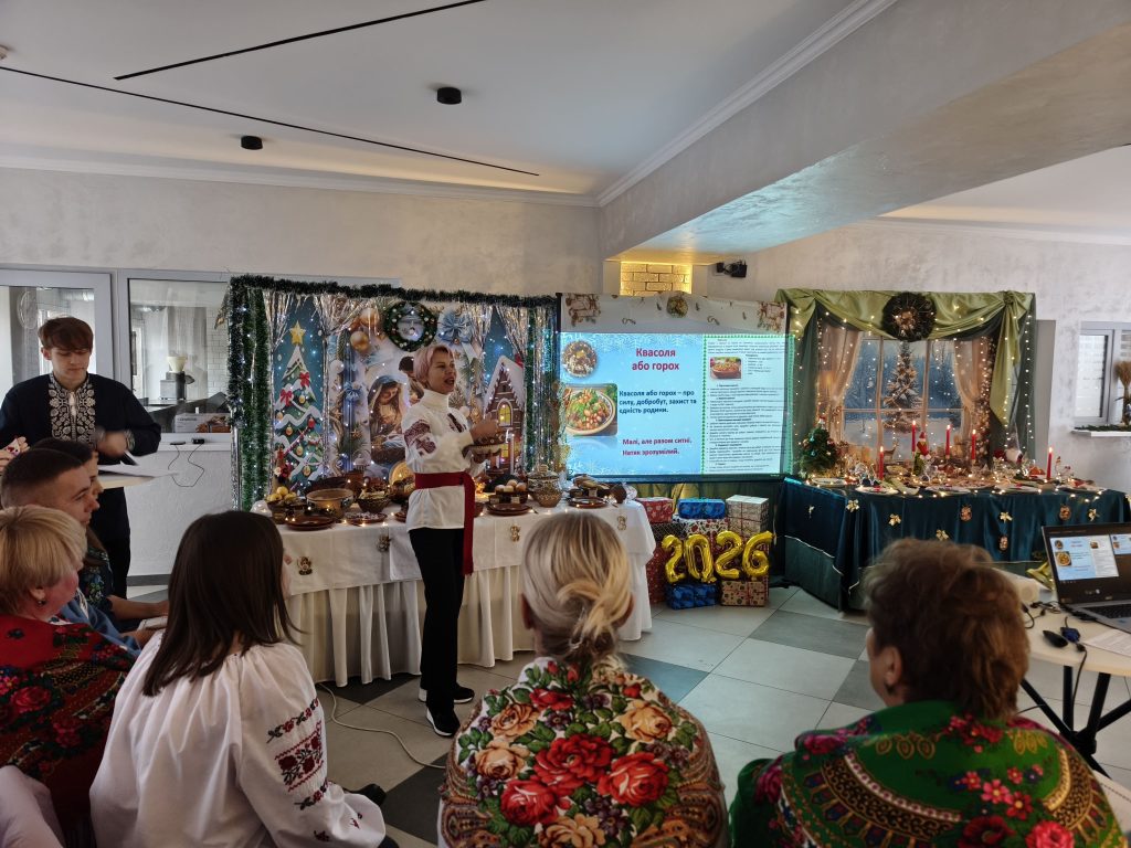 Захід розпочався з глибокого занурення в історію: ведучі майстерно відтворили побут та звичаї наших пращурів, нагадавши про сакральність зимового циклу свят. У центрі уваги опинилися щедро накриті столи з традиційними різдвяними стравами, кожна з яких несла в собі багатовіковий зміст та віру в краще майбутнє. Особливої магії вечору додали колядники — їхні щирі співи на славу народженого Христа наповнили залу енергією єдності та надії на перемогу. Дякуємо за цей теплий вогник народної пам’яті, який зігріває серця та надихає тримати наш культурний фронт!