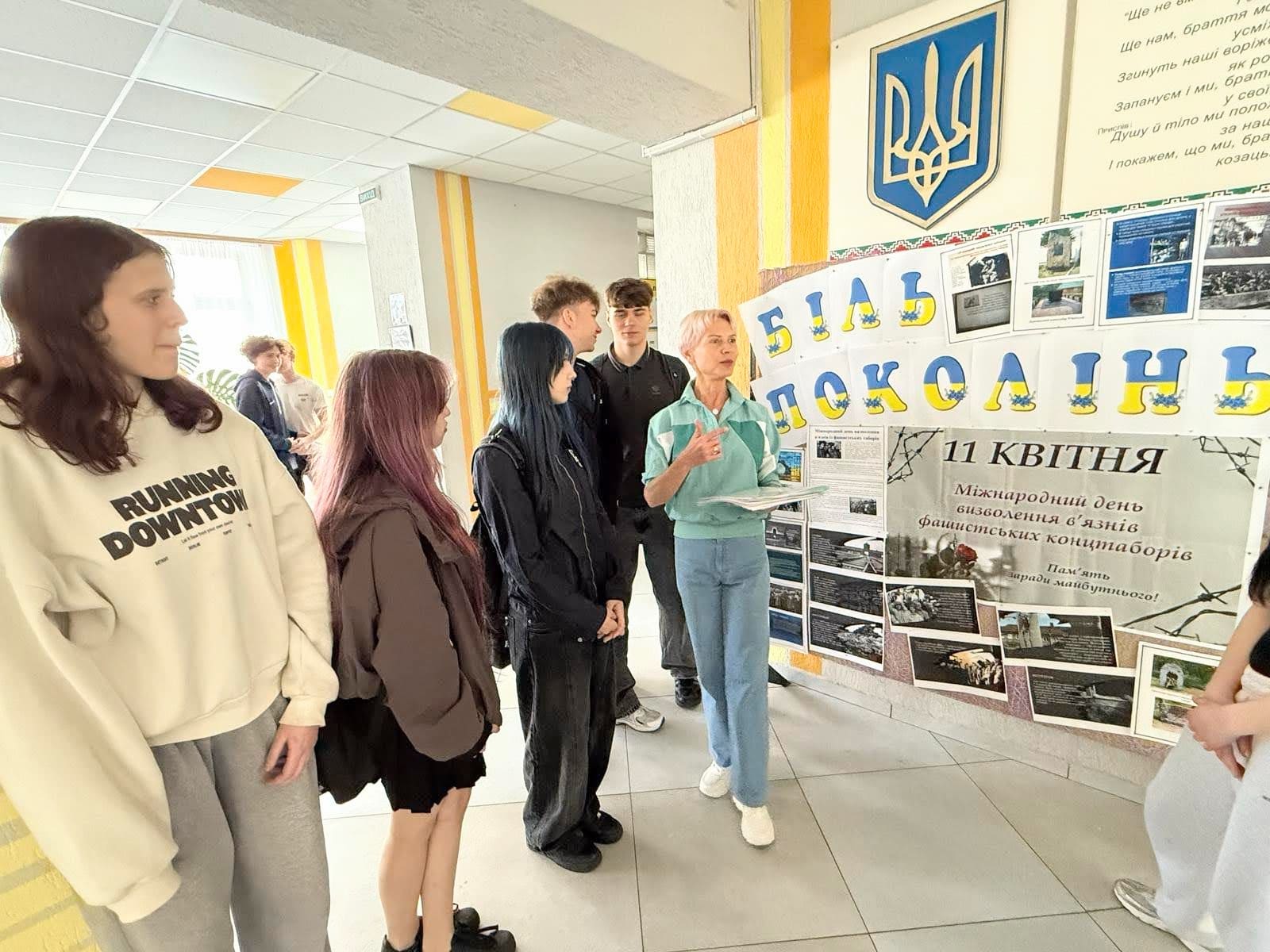 Продовженням теми стали виховні години «Уроки мужності: вижити всупереч», де особлива увага приділялася силі людського духу та важливості збереження історичної правди. Паралельно у холі закладу розгорнуто інформативно-ілюстровану виставку-реквієм «Перервані долі: хроніка табірного пекла». Експозиція містить архівні фотоматеріали, спогади очевидців, що дозволяють глибше осягнути масштаби цієї світової трагедії.