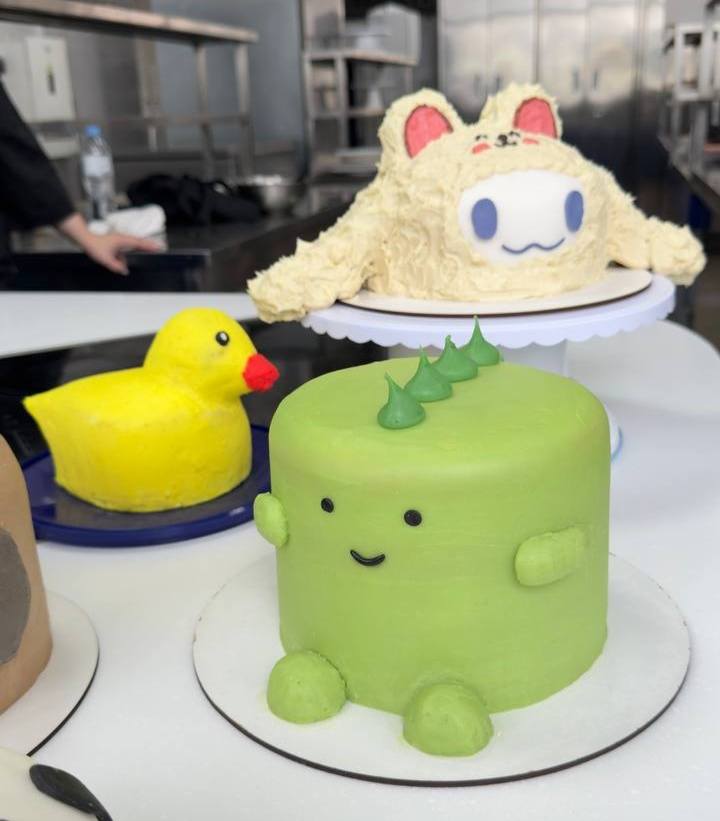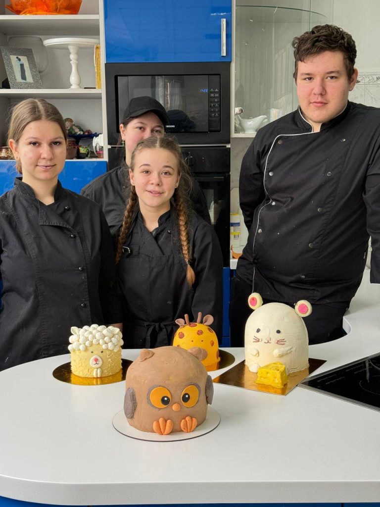 Сьогодні в навчальній майстерні наші студенти-кондитери відпрацювали технологію виготовлення фігурних тортів: працювали над формуванням основи, вирівнюванням, покриттям та декоративним оздобленням.