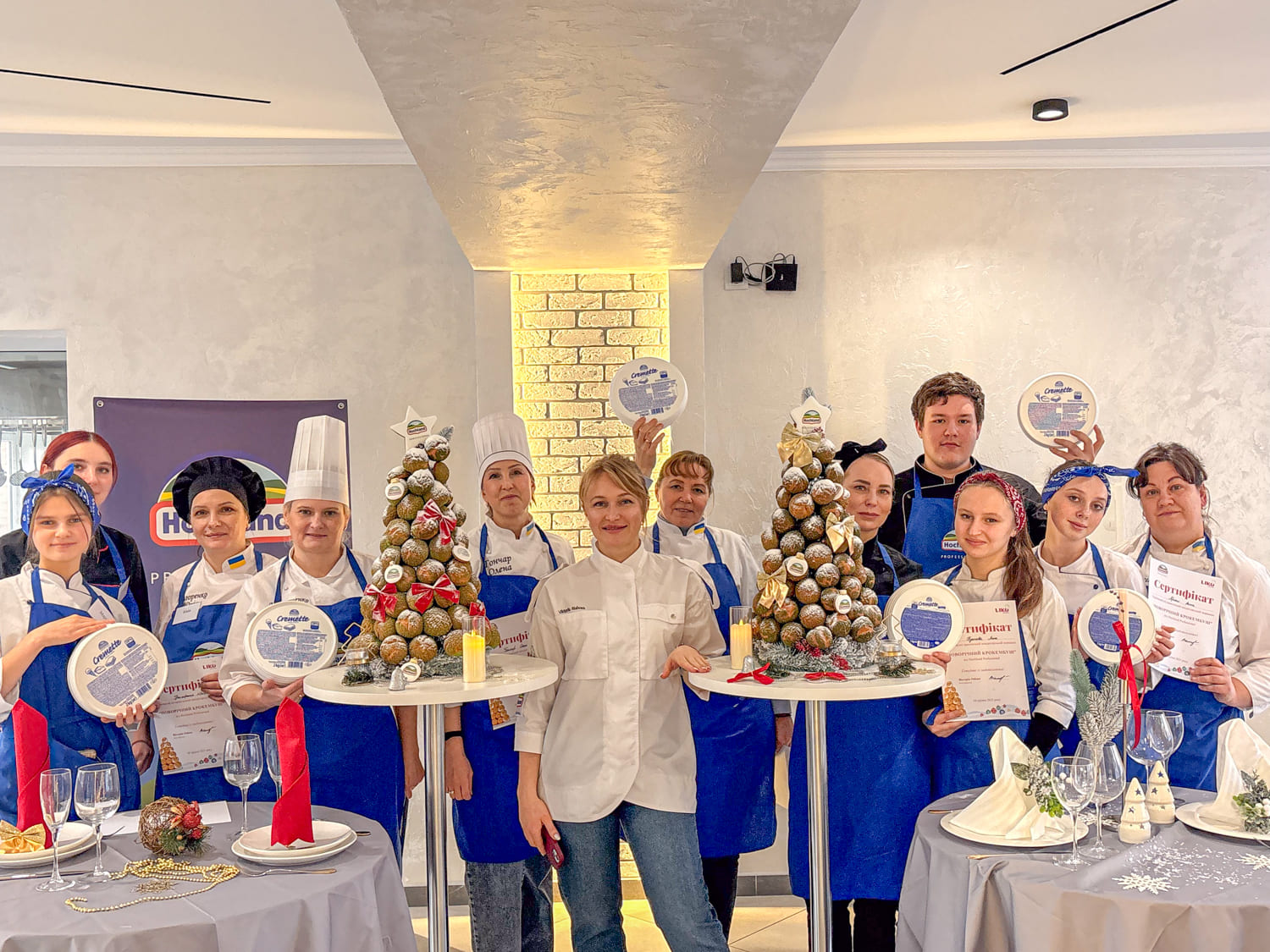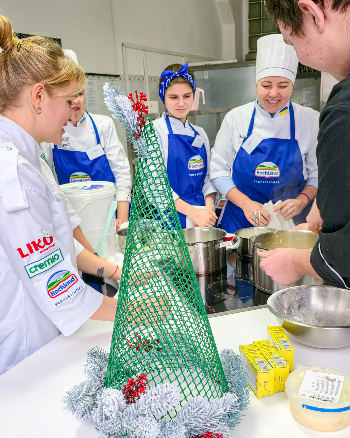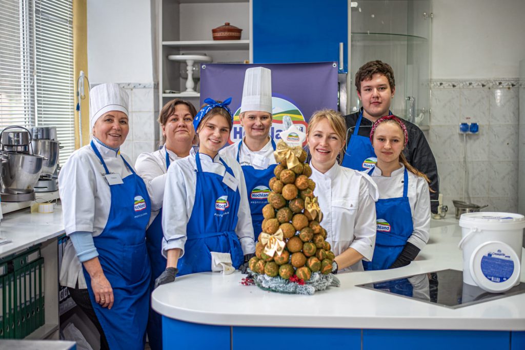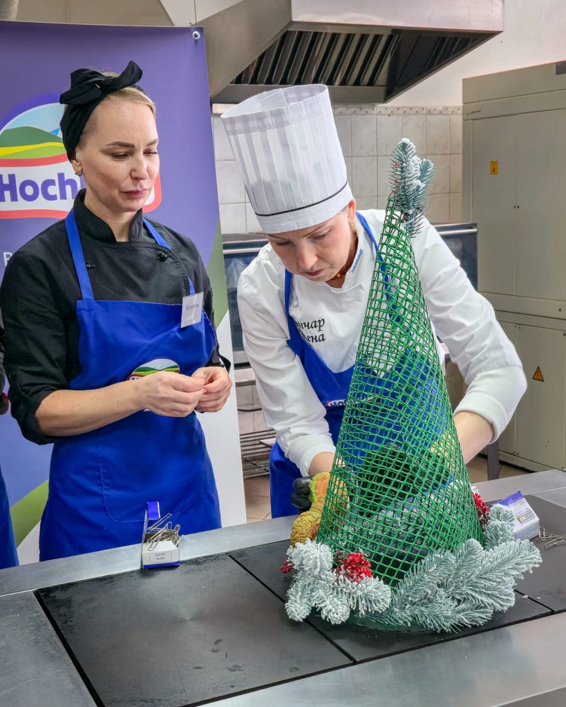 Учасники готували традиційний французький різдвяний десерт крокембуш — витончену композицію з маленьких заварних тістечок із ніжним кремом на основі крем-сиру Hochland “Cremette”.