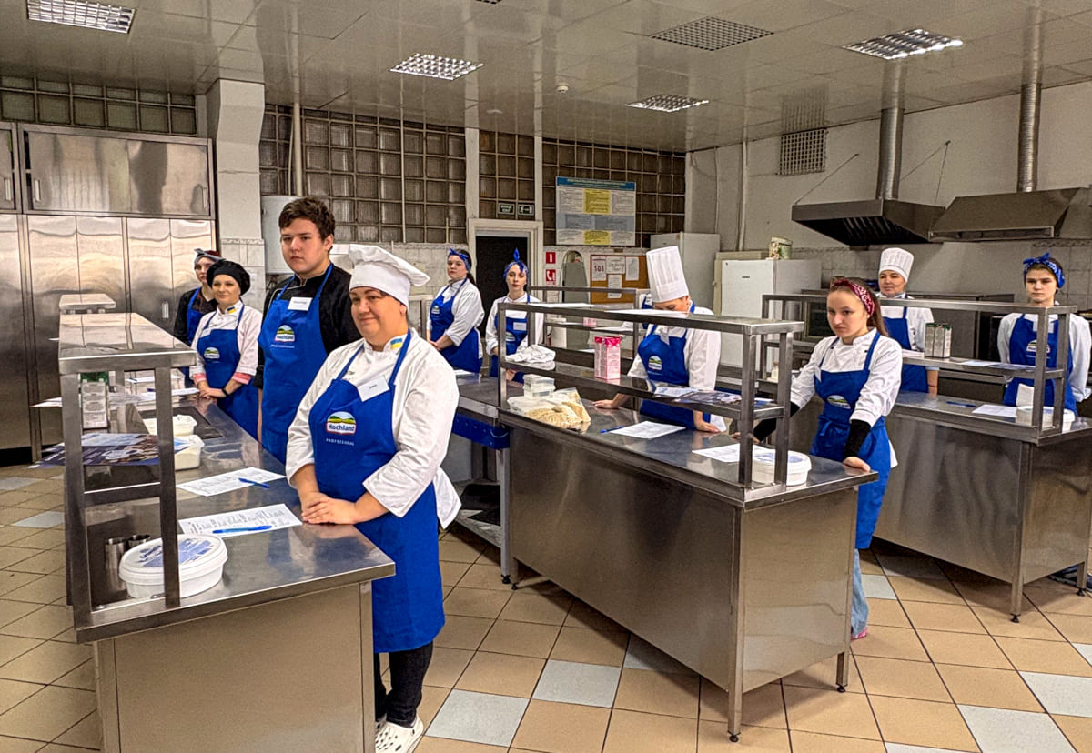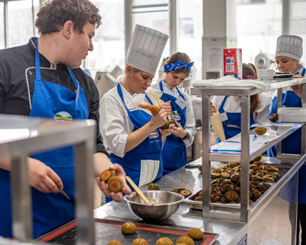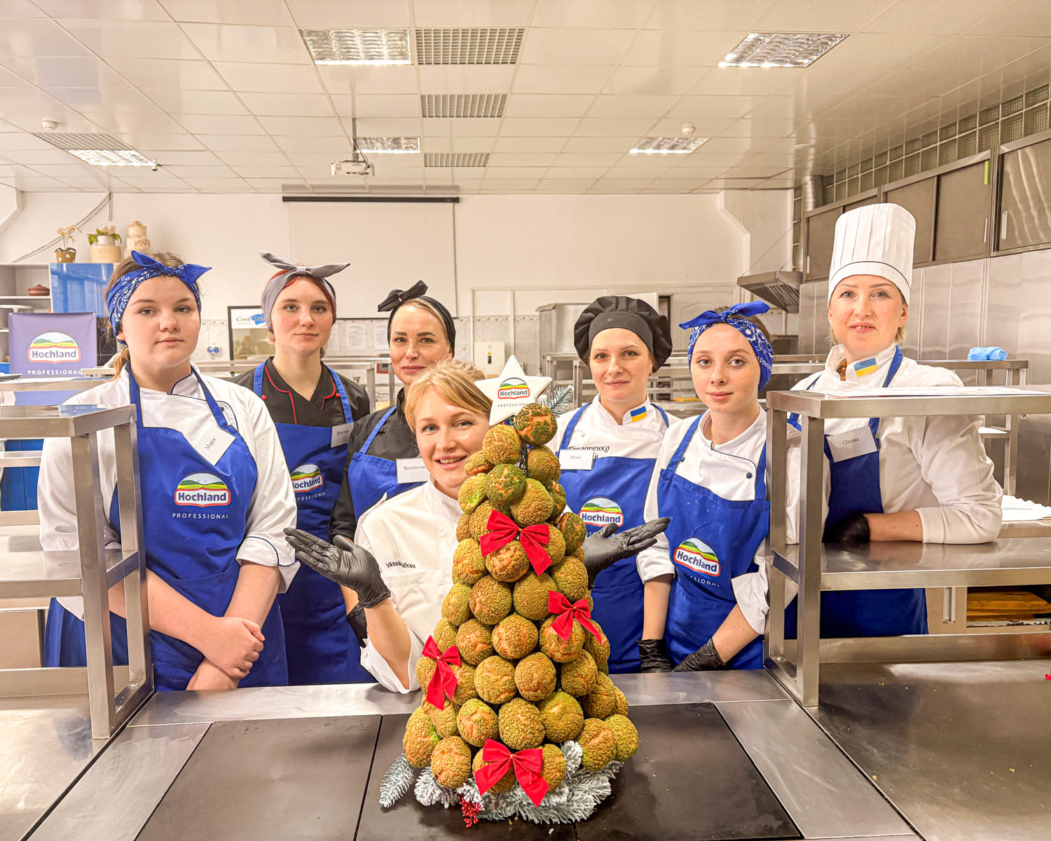 Учасники готували традиційний французький різдвяний десерт крокембуш — витончену композицію з маленьких заварних тістечок із ніжним кремом на основі крем-сиру Hochland “Cremette”.